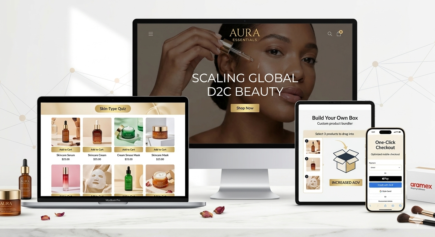 Aura Essentials, a luxury skincare brand based in Dubai, was struggling with a slow, generic Shopify store that didn’t allow for the deep customization they needed for their subscription models and bundle deals. They needed a platform that felt “High-End” but was robust enough to handle flash sales and international shipping.